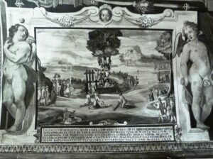 La scelta da parte dei Quattrocchi del Lambardi, come architetto, e di Tarquinio come pittore entrambi molto giovani al momento, rivelerebbe la scarsa ambizione del committente in fatto d’arte e denota la sua attenzione nel contenere i costi. Che cosa c’era di meglio che cercare un giovane frescante di provincia, a conoscenza però dei cantieri di Bagnaia e Caprarola? Le scarse notizie intorno ai primi anni a Roma, non permettono di sapere se fu lo stesso architetto a fare il nome del pittore, come talvolta accadeva. E’ logico pensare che la prima commissione a Roma fosse privata e per una famiglia poco nota. A questo vorrei inoltre aggiungere ipoteticamente la figura di Prospero Orsi, di nascita viterbese e notoriamente attento a promuovere giovani artisti provenienti dalla provincia. Il Mancini a proposito di Prospero dice: “di costume et inclinatione a far piacere a tutti in particolare ai giovani per giovarli et aiutarli”.[25] L’attribuzione del fregio Quattrocchi a Tarquinio Ligustri, sebbene il suo nome non compaia nei documenti, essendo stato pagato direttamente dal committente, è un’affascinante ma temeraria ipotesi da approfondire.